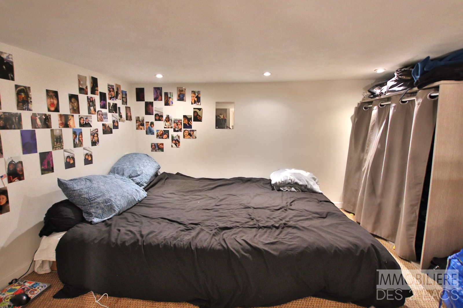 Vous apprécierez l'aménagement de ce T1 avec une kitchenette à l'entrée et un agréable salon avec canapé en dessous du coin nuit de la mezzanine.