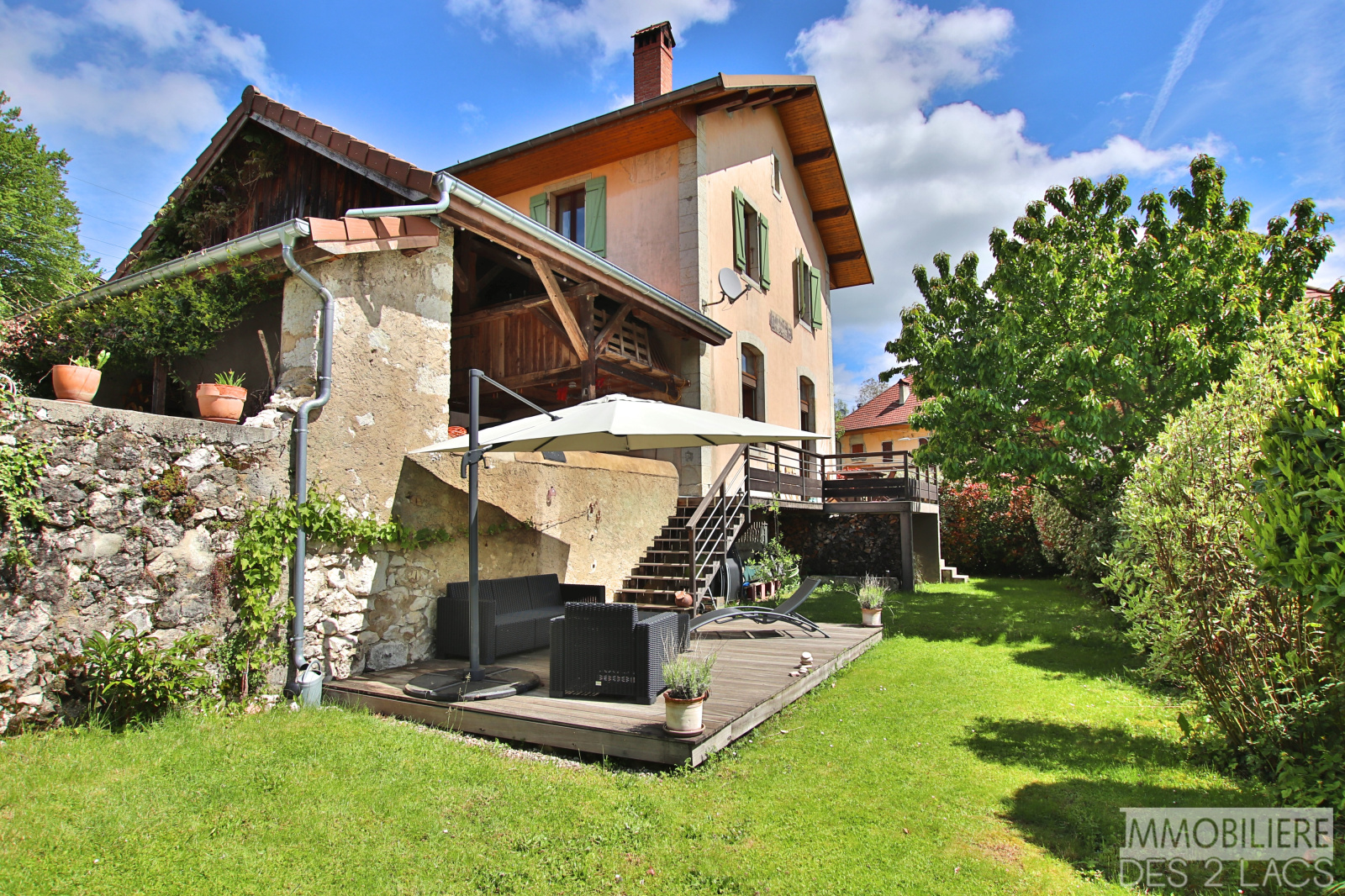De plain-pied , ce bien vous offre une agréable pièce de vie de plus de 42m2 avec sa cuisine ouverte sur le salon séjour. Vous pourrez accéder directement à une terrasse exposée sud-est. Parquet, cheminée apportent cachet à la bâtisse.Au deuxième niveau la partie nuit accueille trois belles chambres et une salle de bains. Au dernier étage, vous découvrirez la chambre parentale avec bureau ou dressing et sa salle d'eau. La maison dispose d'un sous sol et d'une cave d'une grande surface. Chauffage et eau chaude produite par une pompe à chaleur. En exterieur un galeta abrite deux emplacements de véhicules et également un parking goudronné est attenant.Le terrain de 640m2 est clos accueillant une jolie terrasse et un jardinet. Diagnostics DPE D et B. Référence mandat 2039. Les honoraires sont à la charge vendeur. Pour plus de renseignements contacte Agence Immobilière des 2 lacs d'Annecy06 32 64 56 79.