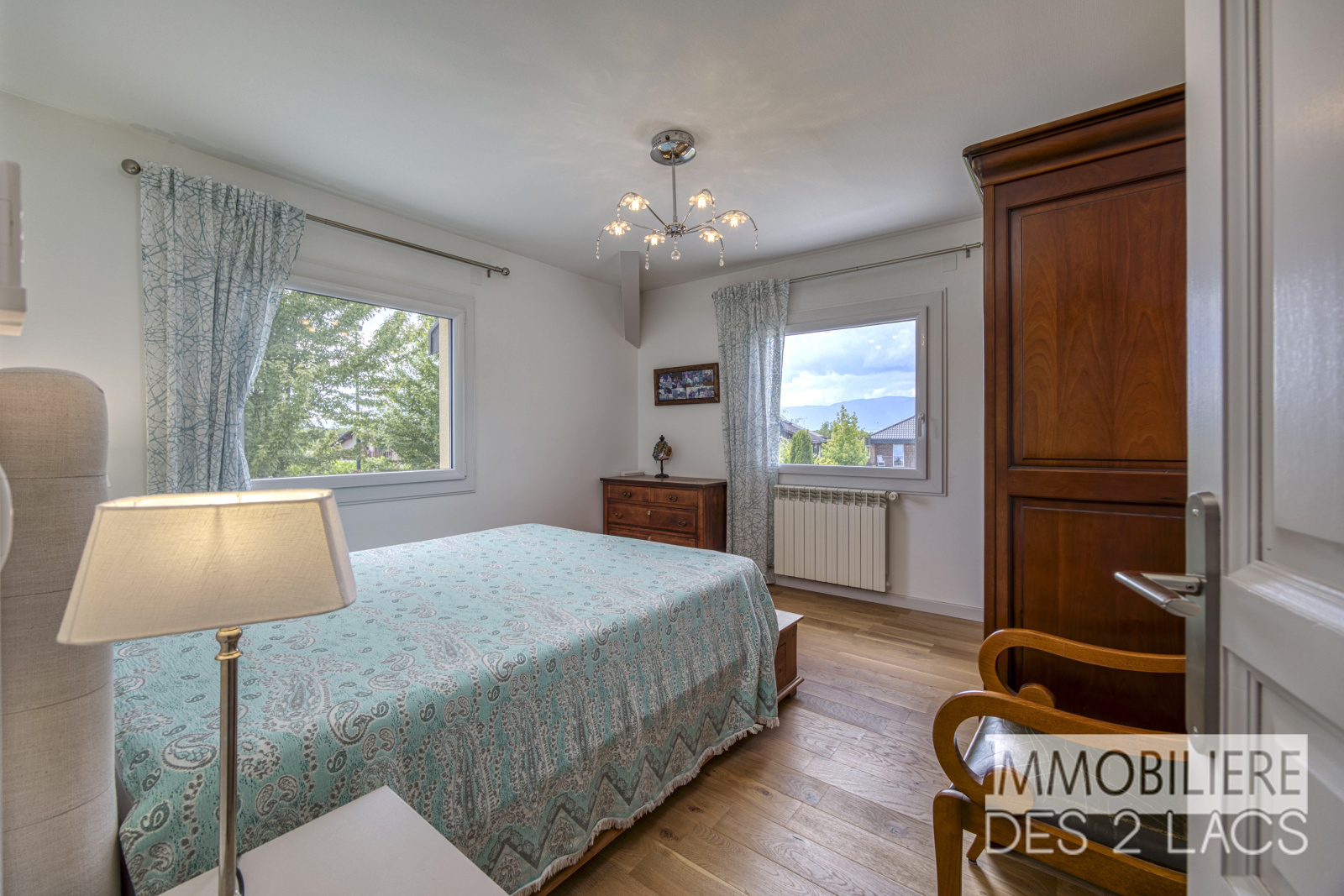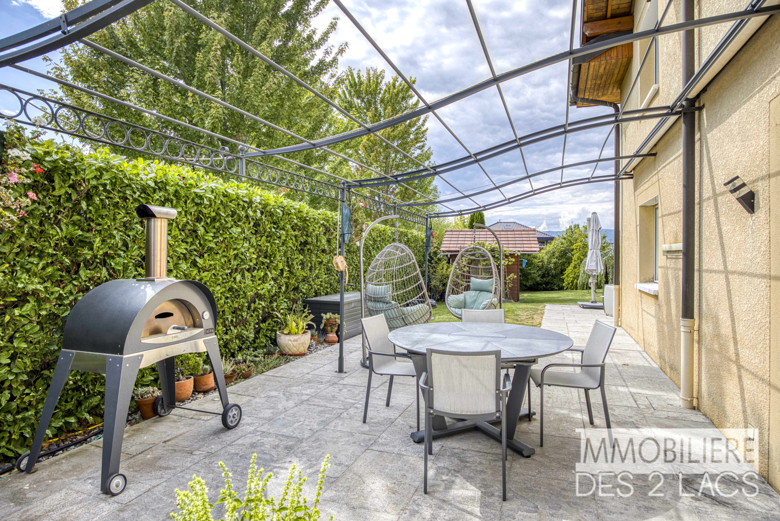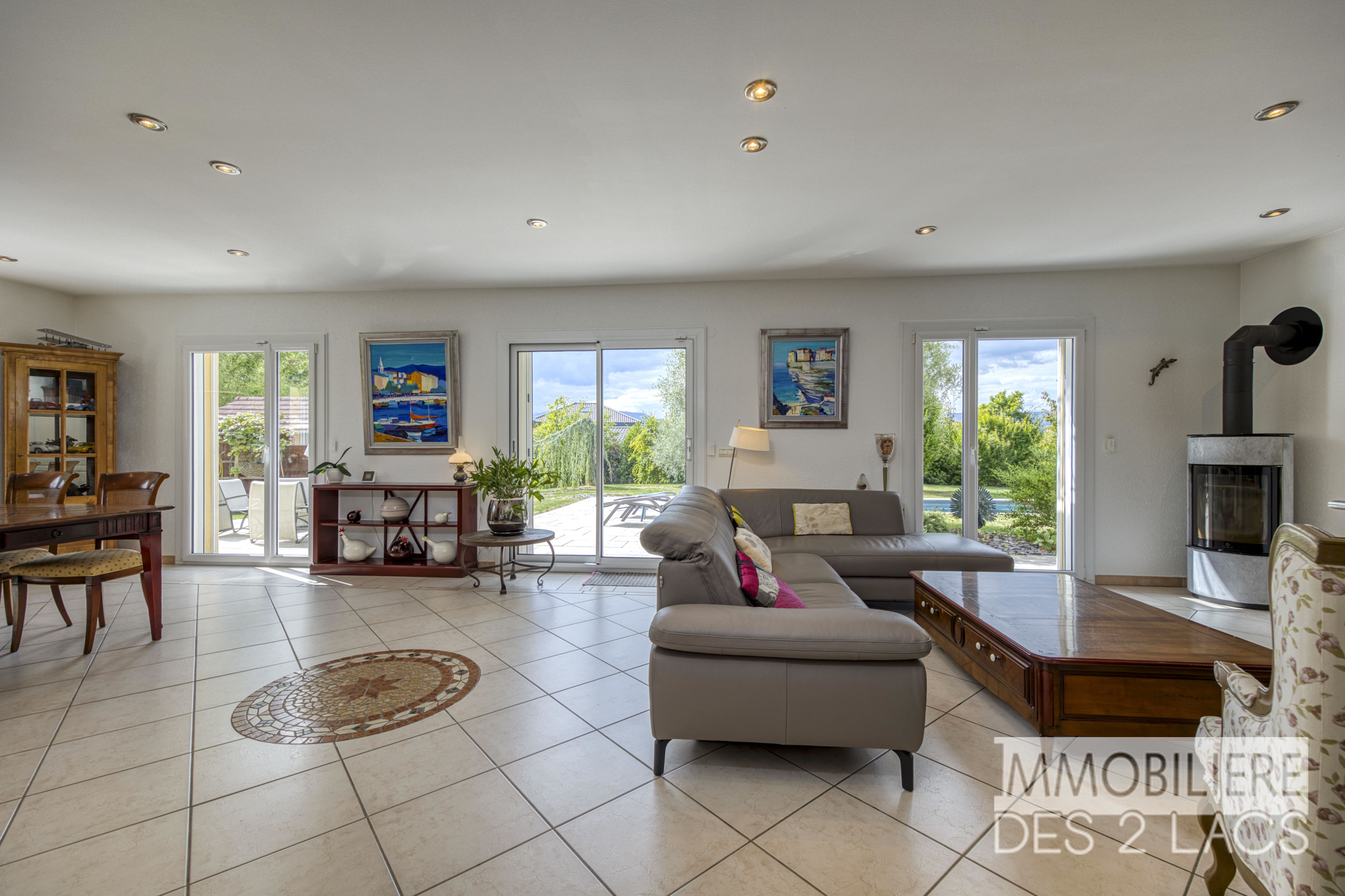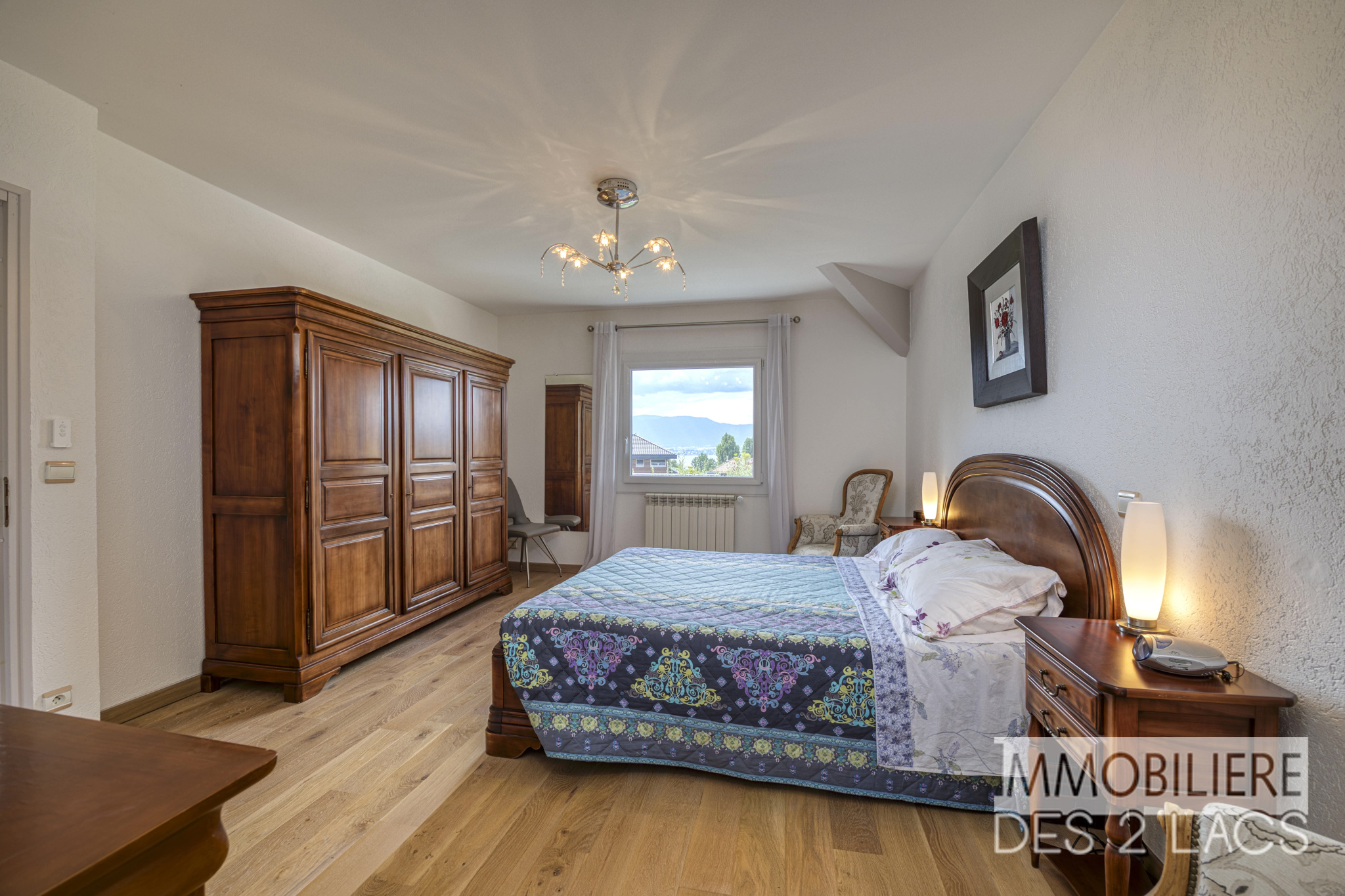 Elle se compose notamment d'un vaste séjour lumineux avec baies vitrées ouvrant sur la terrasse, le jardin et sa piscine. Une cuisine équipée de standing et semi-ouverte. Au coin nuit, 5 chambres climatisées dont une de plain-pied et quatre chambres à l’étage avec vue sur le lac Léman, 2 salles de bains, une salle d’eau et de nombreux rangements intégrés.