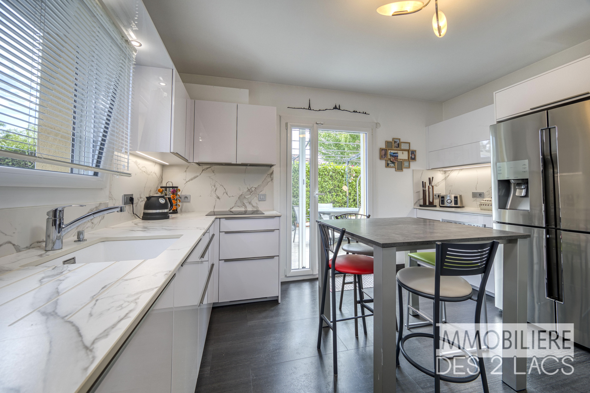Édifiée sur un terrain clos et arboré de 1173m2 cette élégante maison développe 174 m² habitables et se distingue par ses volumes généreux, sa luminosité (ouest) et ses prestations haut de gamme.