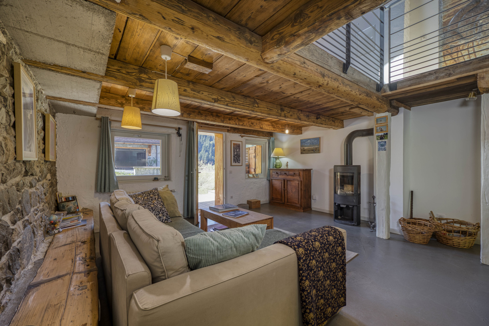 Manigod (74230)L'appartement d’une superficie de 137 m² - qui pourrait plus s'apparenter à une maison- s'intègre dans une belle ferme complètement rénovée. Il propose un vaste salon à l'atmosphère cosy de 45 m², agrémenté d’un poêle à bois. Dans le prolongement, une cuisine ouverte donnant sur une grande terrasse et un jardin privatifs avec un cadre idylique sur les montagnes et colines environnantes.