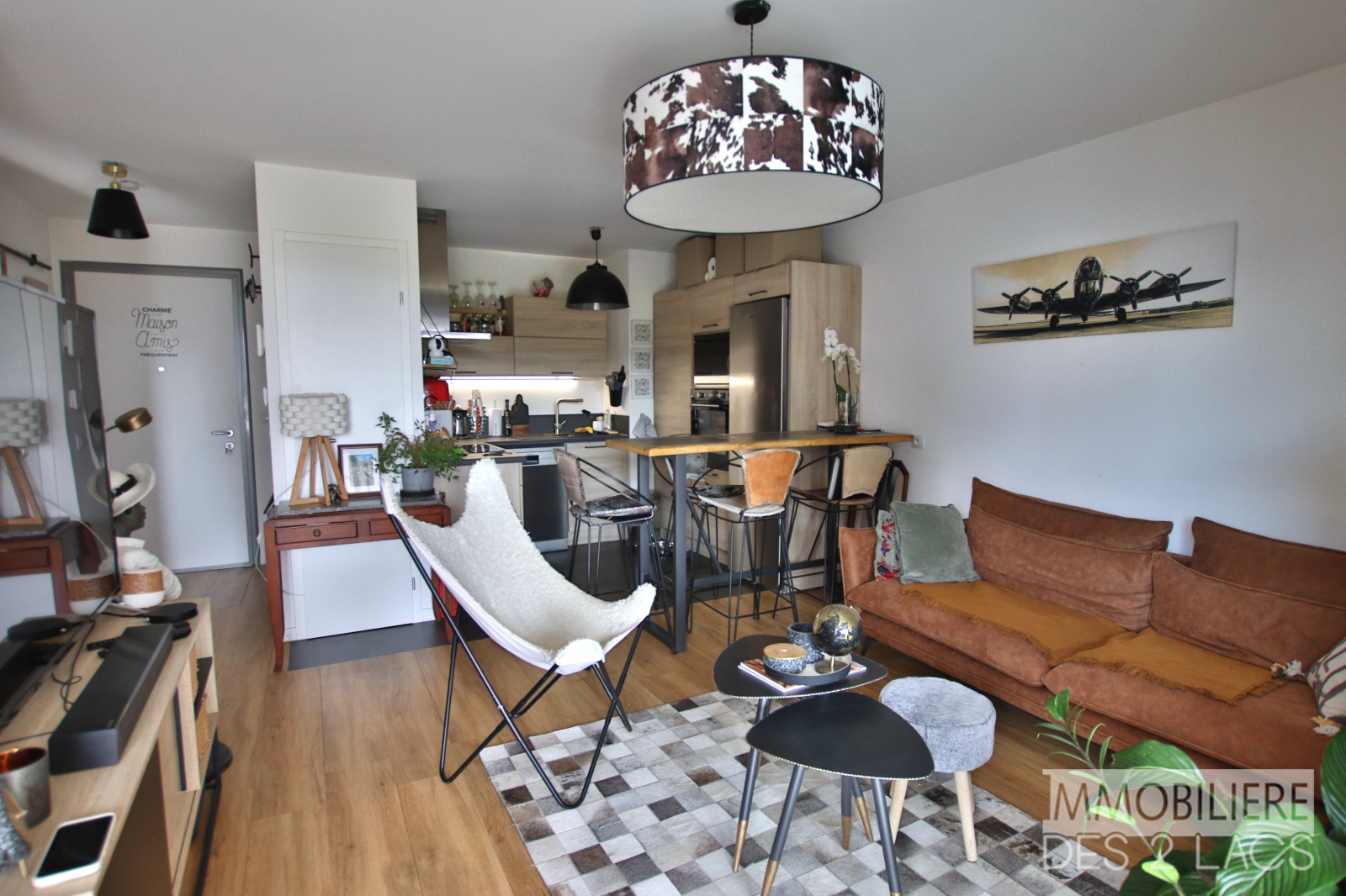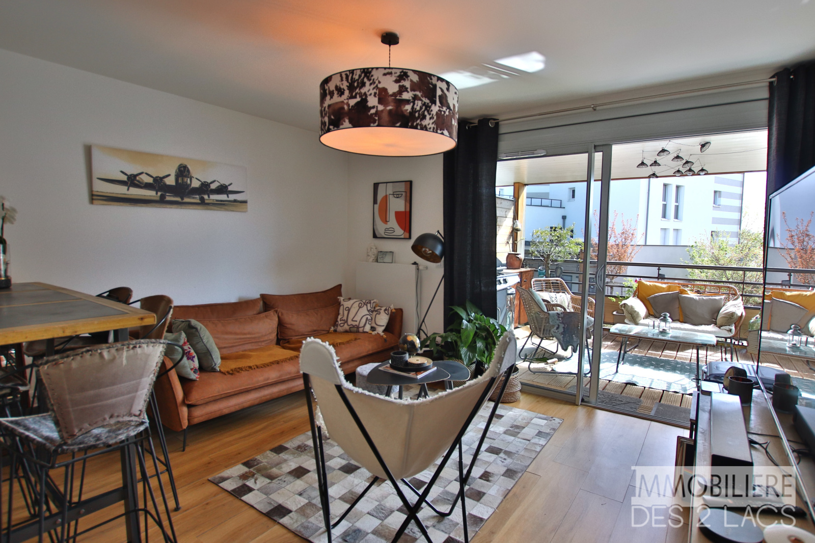 Seynod (74600)Vendu! l'Agence Immobilière des 2 lacs vous propose en exclusivité un beau T2 dans une copropriété récente et résidentielle. Dans un cadre enchanteur et bien exposé cet appartement est agrémenté d'une belle terrasse couverte sud-ouest de 12,25m2! La pièce de vie de 23,14m2 où la cuisine est ouverte sur le séjour salon donne directement sur l'exterieur. La chambre de cet appartement est spacieuse d'une superficie de 12,10 m2 avec placard. Une cave vient compléter le bien et un garage en plus du prix de vente. Chauffage individuel au gaz - Diagnostics DPE B et GES C - Charges annuelles 1289,48€. Référence mandat 2108 Les informations sur les risques auxquels ce bien est exposé sont disponibles sur le site Géorisques : www.georisques.gouv.fr Pour plus d'informations Agence IMMOBILIERE DES 2 LACS ANNECY 06 32 64 56 79