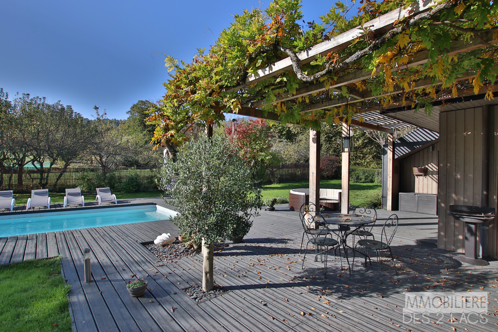 Saint-Jorioz (74410)Située dans un secteur calme, à 2 minutes du village de Saint-Jorioz, cette belle villa d'Architecte, baignée de lumière vous offre de son jardin de 1200m2 une vue dégagée sur les montagnes.