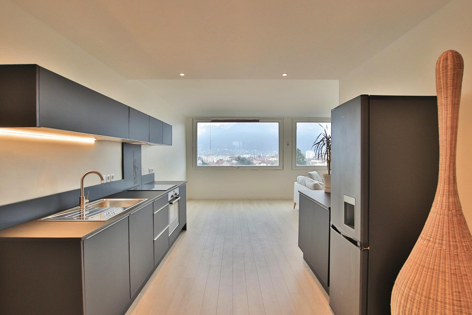 Annecy (74000)Annecy centre, secteur courier, magnifique 3 pièces contemporain au 9ème étage avec vue splendide sur les haras, les montagnes, le lac et la ville d'Annecy.