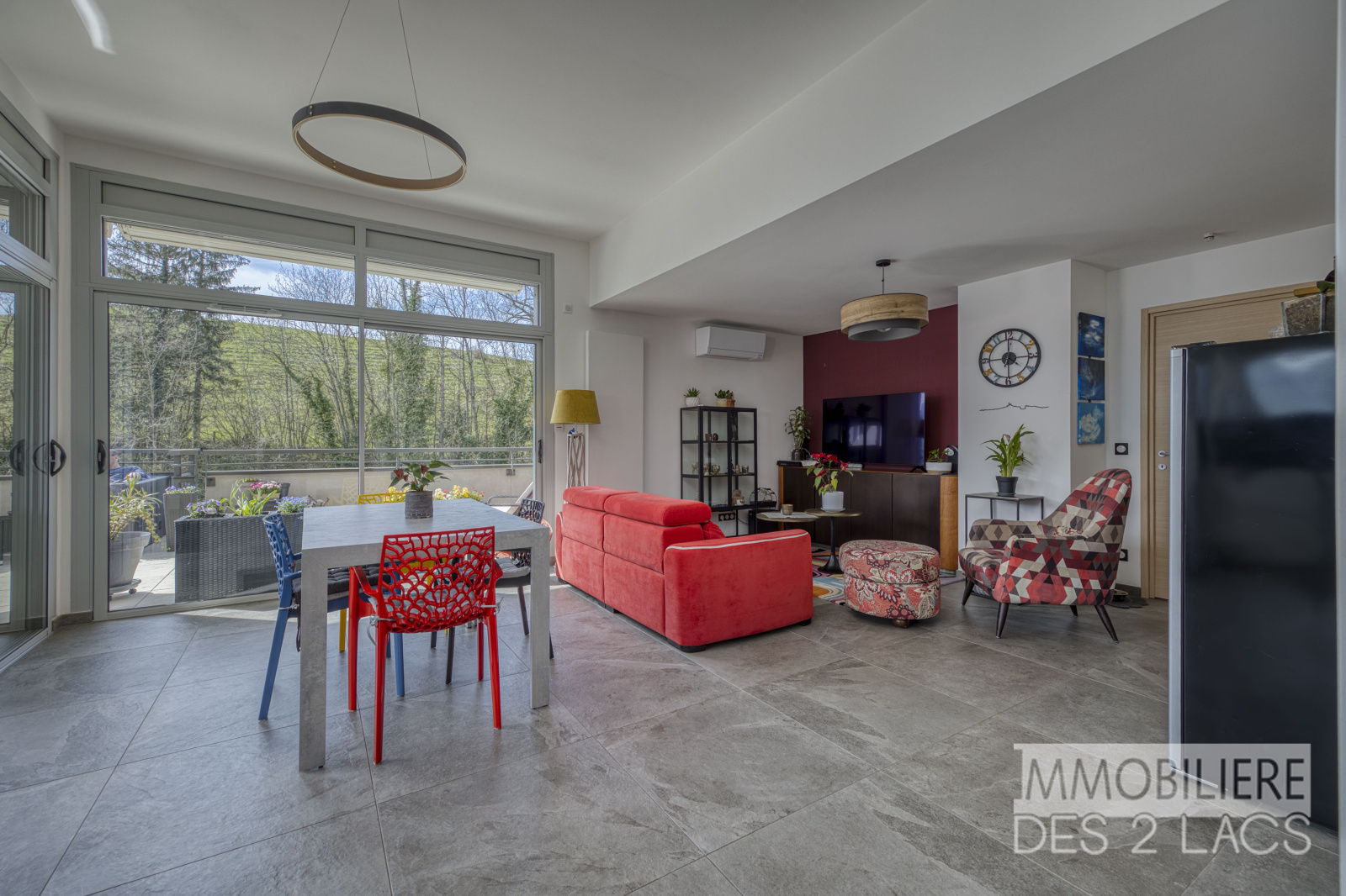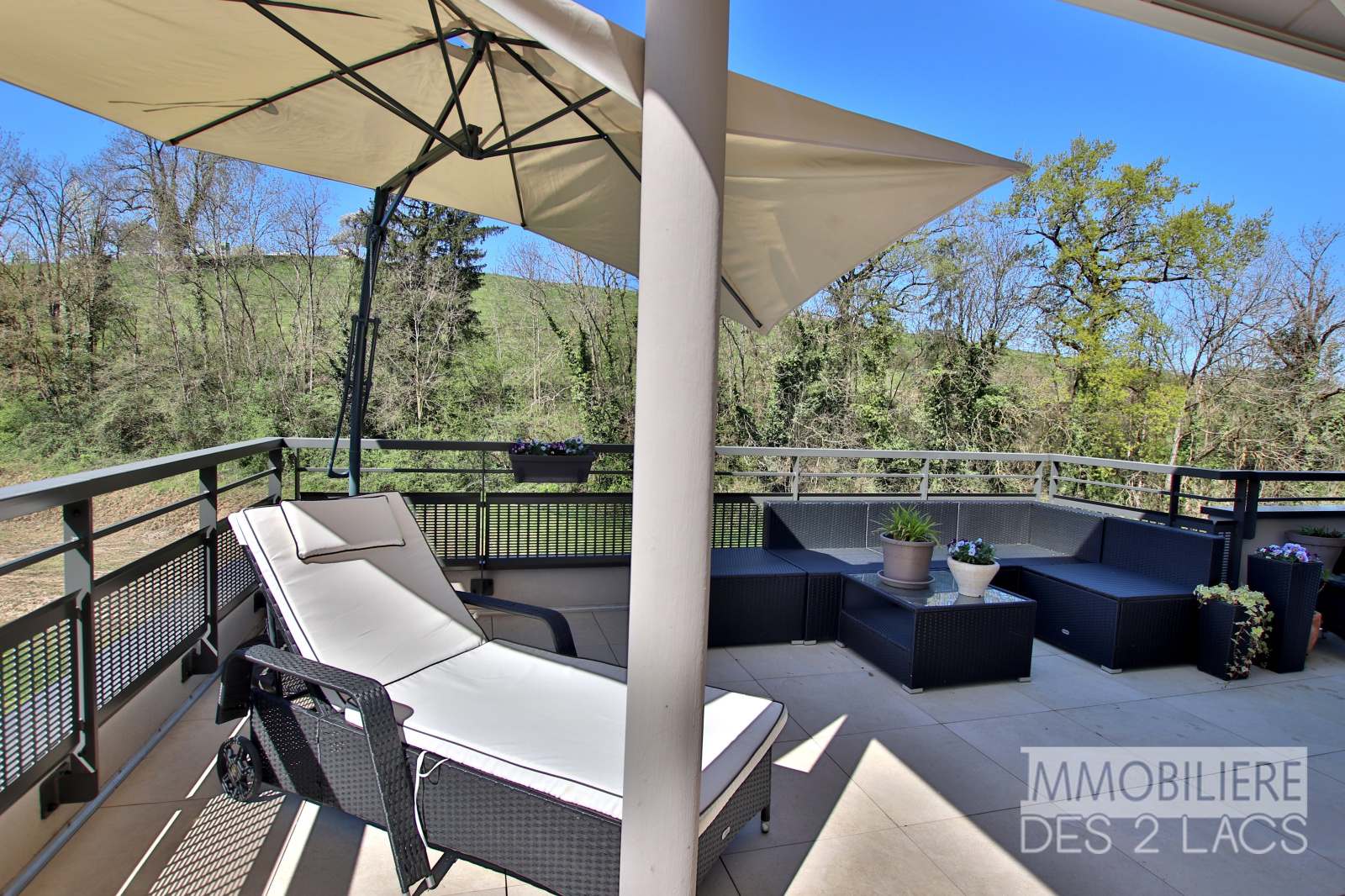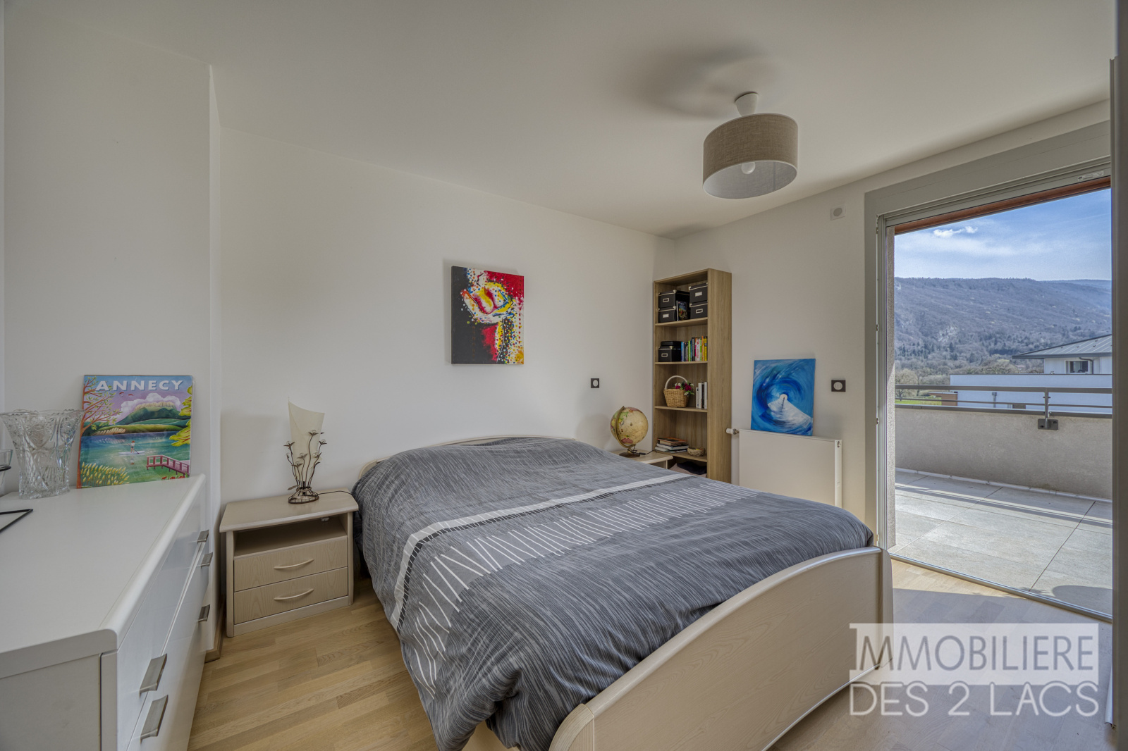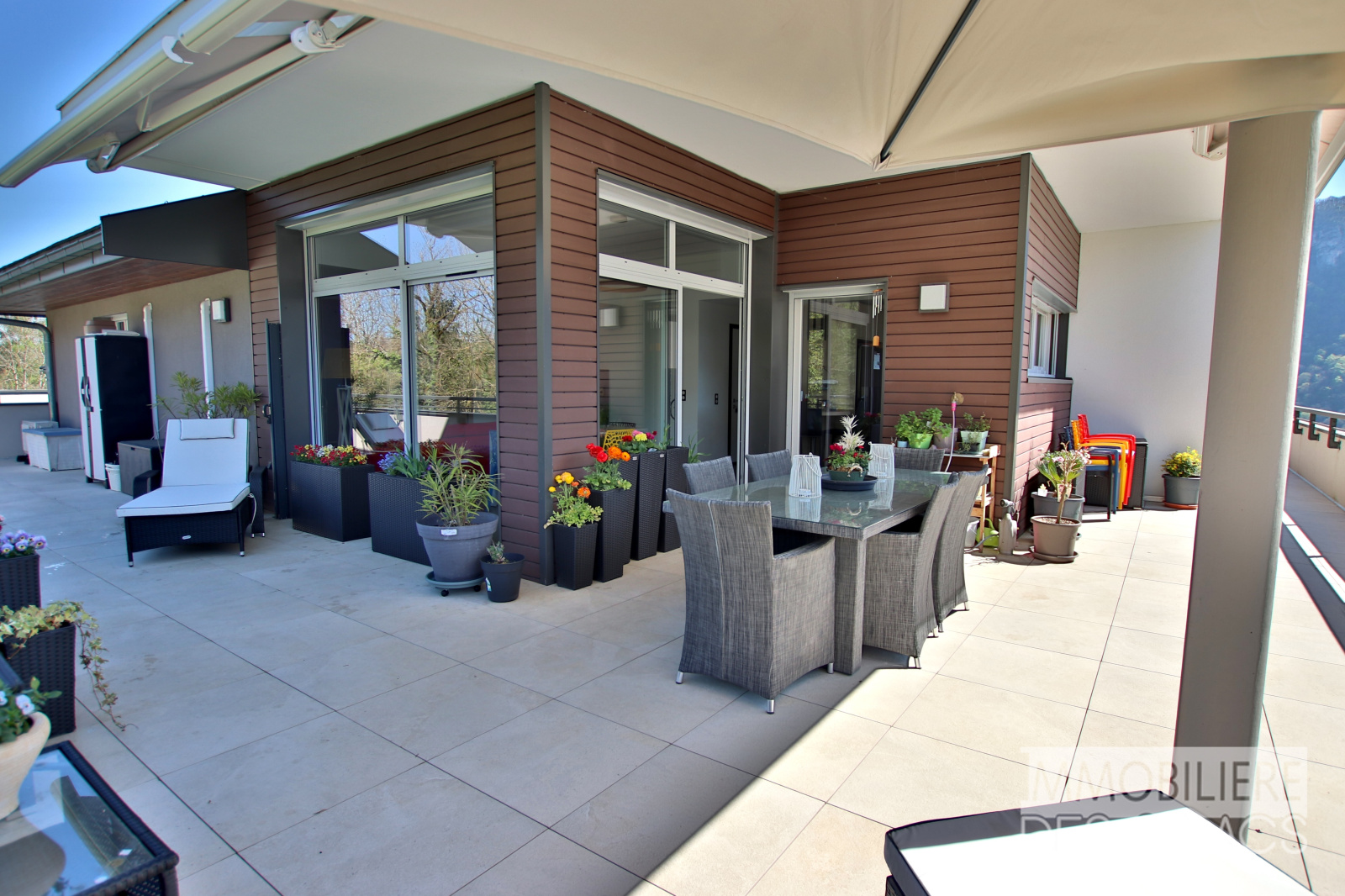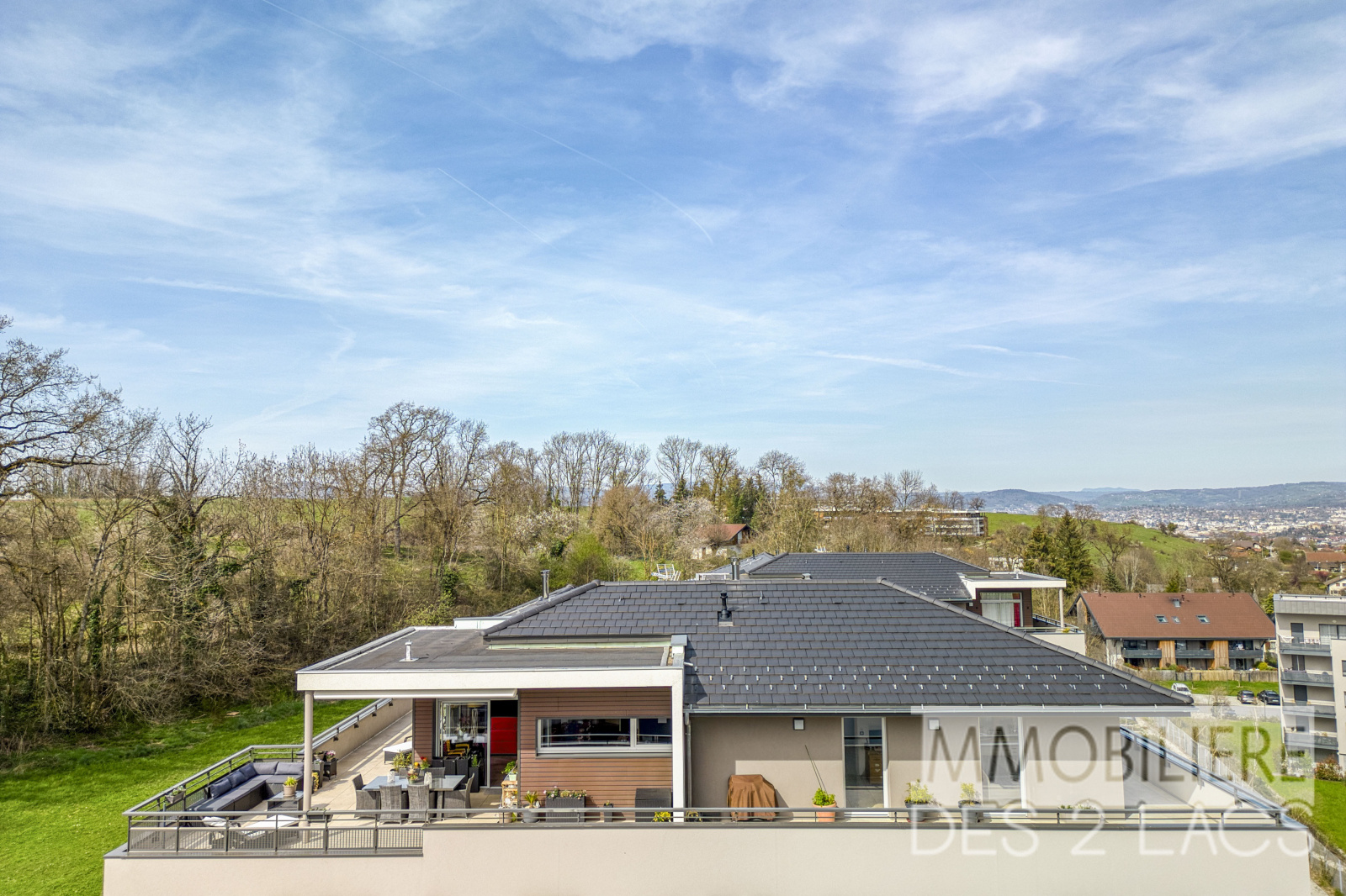 116m2 de confort lumineux, prolongé par une terrasse plein ciel de 118,04m2 sans vis à vis, une vraie maison perchée baignée de lumière avec différentes vues sur le semnoz, la verdure et au loin la ville d'Annecy.